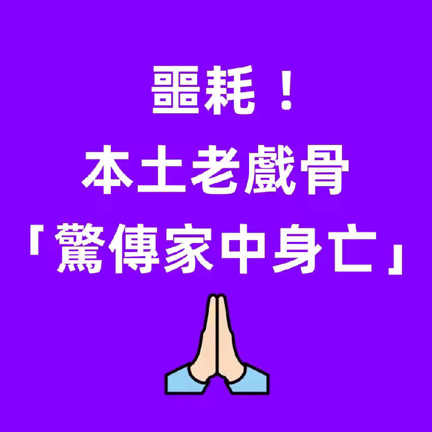 噩耗!本土老戲骨「驚傳家中身亡」!