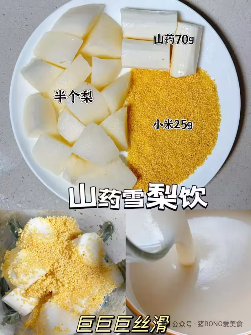 1️⃣山藥雪梨飲:半個梨+山藥70g小米25g+加水 破壁機水位線600ml位置