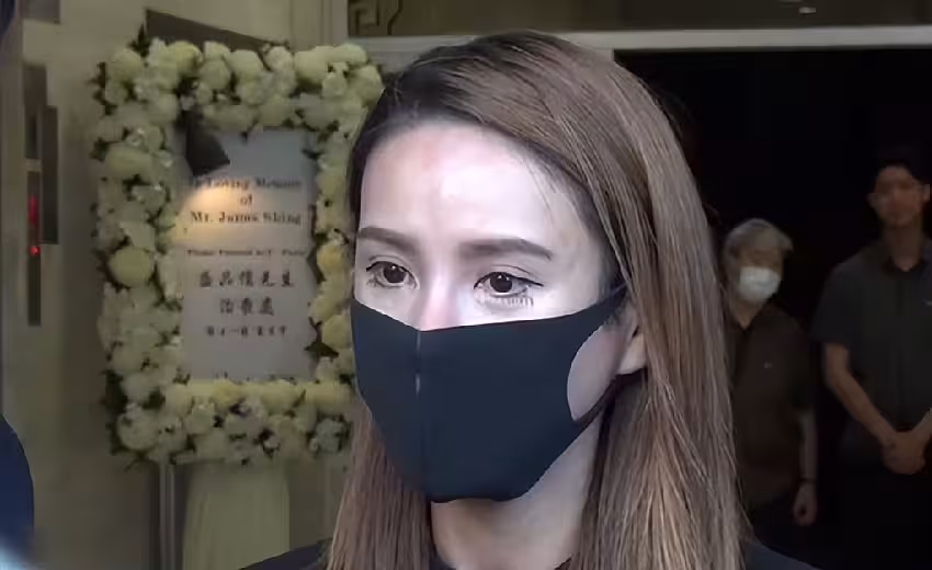 大約下午4點,遺孀蔡一鳳帶同一對子女抵達靈堂,她一身素衣戴著口罩,但仍然明顯見到雙眼紅腫,非常憔悴,面對傳媒,不欲多言,她雙手合十向在場所有記者鞠躬致歉,只透露亡夫的喪禮以佛教儀式舉行,遺體將於明早出殯火化。