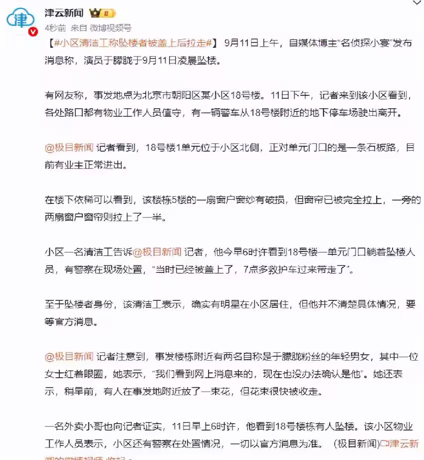 中視小生驚傳 「從11樓跳下身亡」 享壽76歲 家屬淚曝原因 「他想不開很久了」周遊聞噩耗嚇到痛哭