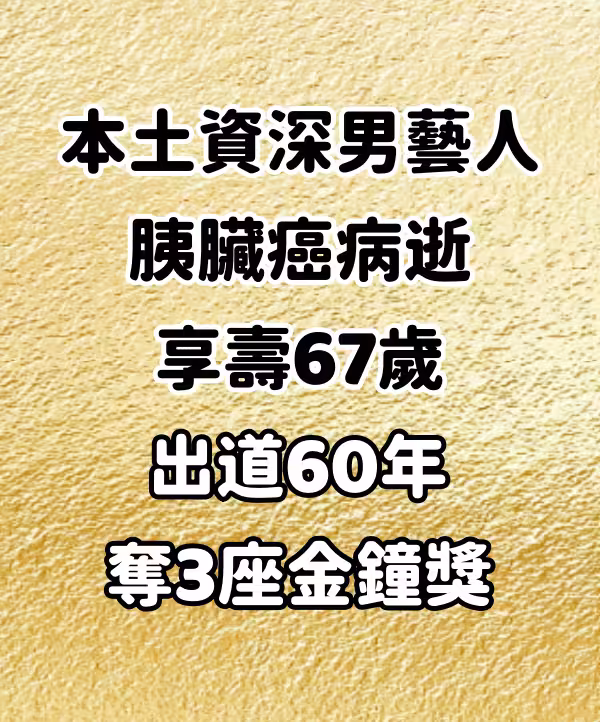 本土資深男藝人,胰臟癌病逝享壽67歲 出道60年奪3座金鐘獎~