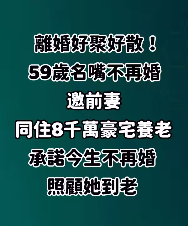 離婚好聚好散!59歲名嘴不再婚「邀前妻同住8千萬豪宅養老」承諾今生不再婚,照顧她到老