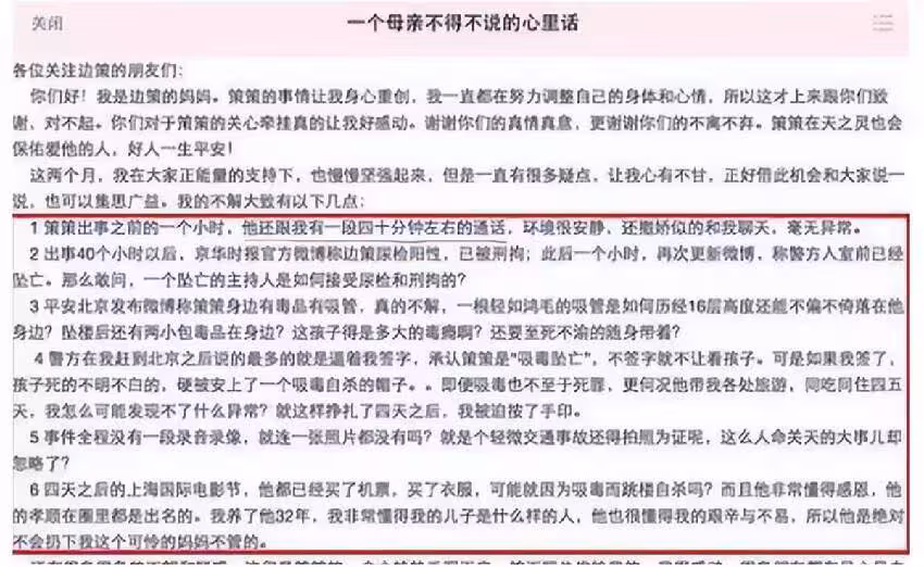 邊策一失足則千古恨,一夜之間,從央視榮耀成為「黑點」 面對外界質疑,邊策母親連夜發文提問。
