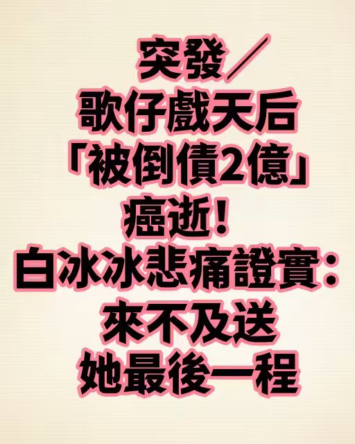 突發/歌仔戲天后「被倒債2億」癌逝!白冰冰悲痛證實:來不及送她最後一程
