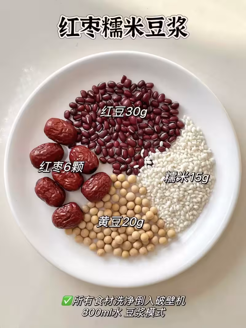 ☑️食材:紅豆30g、紅棗6顆、糯米15g、黃豆20g