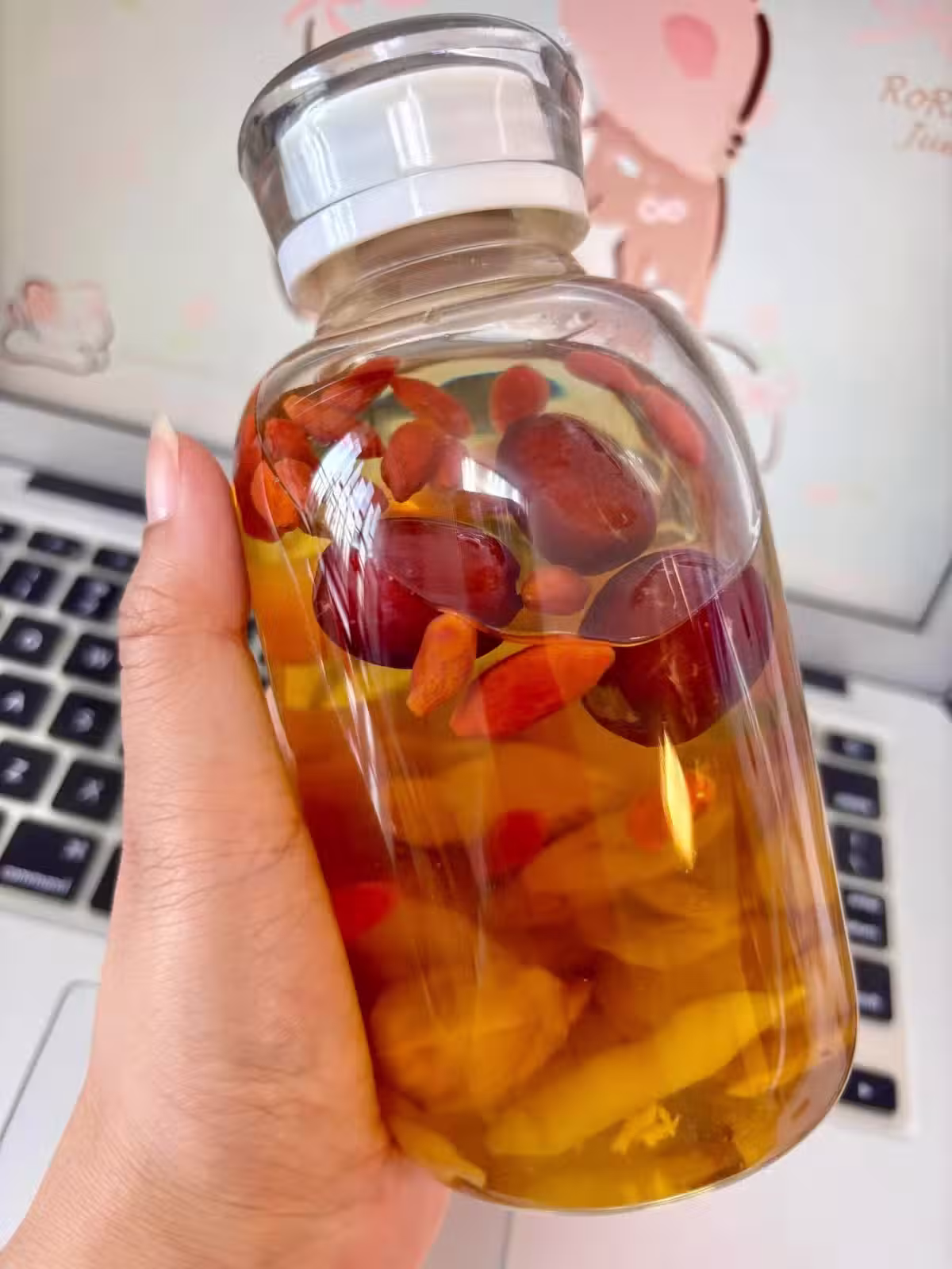 由於我不停地吃「蒸蘋果水」,導致臉蛋越來越紅潤透亮