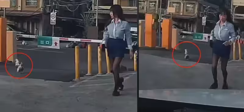 女OL停車場被公雞追 60秒影片爆紅!網喊:公雞愛黑絲