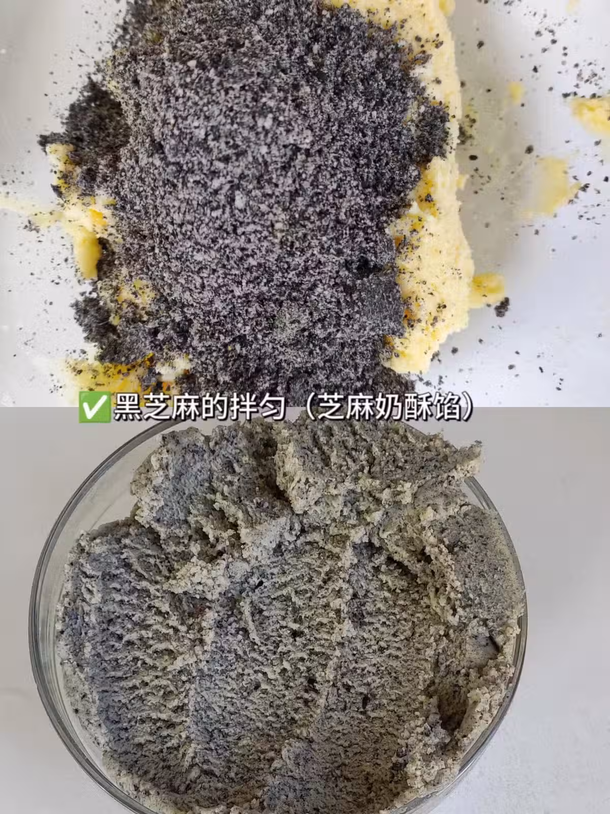 ❗️❗️❗️圖中我是一次做了配方4倍的量,最後平均分成4份(每份大約150克左右)。其中一份做原味奶酥餡,其餘3份分別加入抹茶粉、可可粉、黑芝麻粉拌勻就成了多口味奶酥餡。
