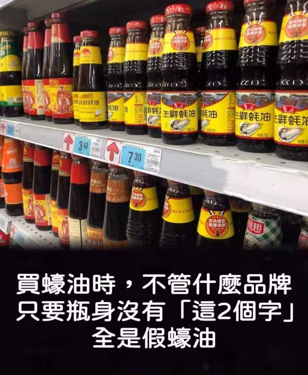 買蚝油時,不管什麼品牌,只要瓶身沒有「這2個字」,全是假蚝油!!
