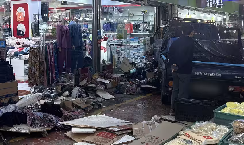 一名60多歲男性駕駛卡車時,車輛突然失去控制朝市場內部衝去。
