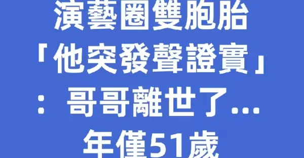 悲慟! 演藝圈雙胞胎 「他突發聲證實」: 哥哥離世了... 年僅51歲 「後事已結束」