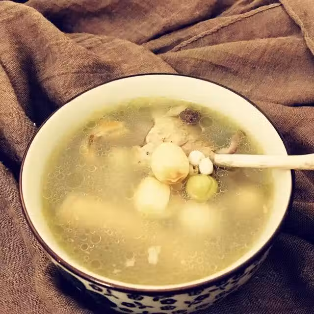 老鴨(最少餵養9個月以上)半隻;沙參少許;黃芪少許;蓮子少許;薏仁少許;銀杏果少許;老薑一塊;水適量;鹽少許