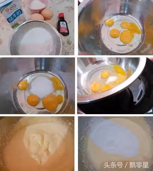 1.原料:牛奶,雞蛋,糖,低粉和澱粉混合均勻,香草精