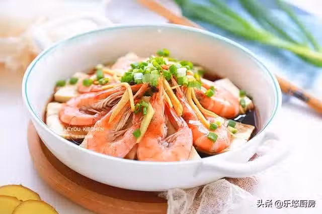 第一步:準備食材。鮮蝦幾隻、豆腐1塊、姜少許、香蔥少許。