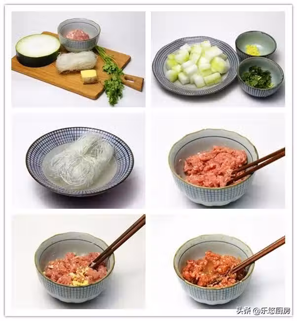 第八步:燒一鍋開水,然後開始做丸子。取適量的肉餡放入手中,用虎口處擠出一個丸子。