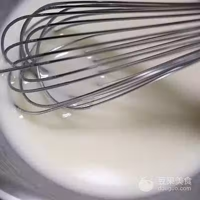 2、混合牛奶、玉米油和細砂糖,用手動打蛋器攪拌至乳化狀態。