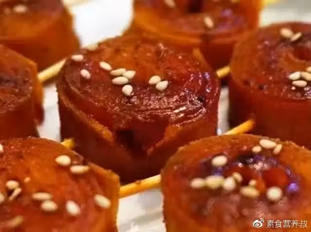 食材:豆腐皮1塊,素食叉燒醬2勺,番茄醬1勺,白芝麻10克,生抽1勺