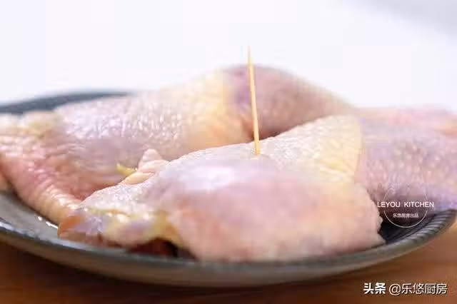 第三步:把雞腿放到一個大盆中,倒入兩勺料酒,然後戴上手套,給雞肉多按摩一會兒,這樣方便去腥。
