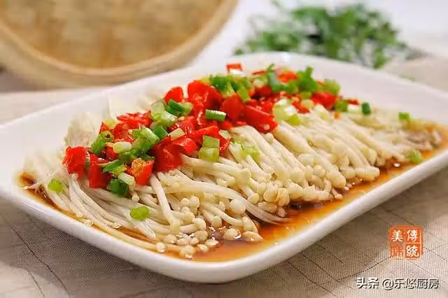 第一步:準備食材。金針菇兩小把、剁椒適量、香蔥適量、蒜適量。
