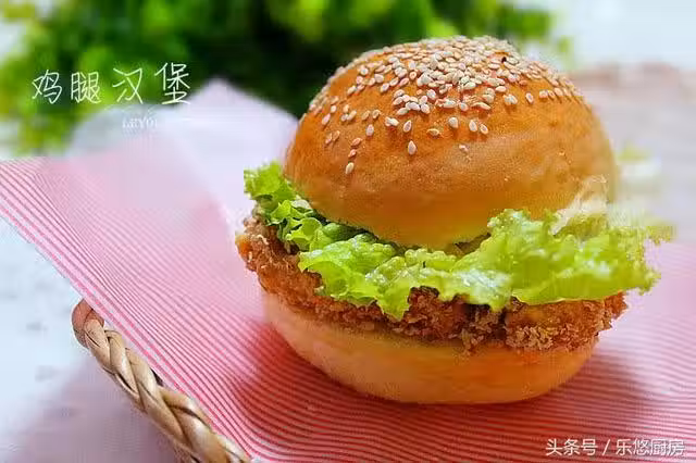 第一步:準備食材。麵包漢堡胚兩個、雞腿兩個、生菜一根、洋蔥適量、麵包糠適量、玉米澱粉適量、雞蛋一個、沙拉醬適量。