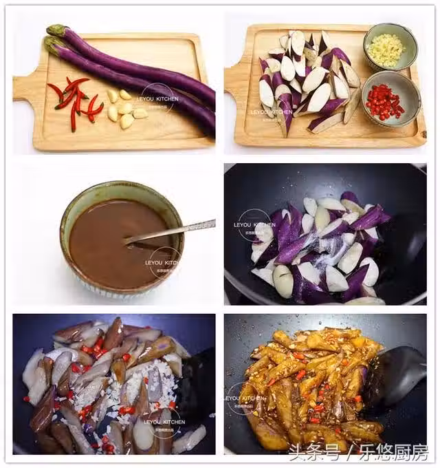 第五步:煸炒至茄子變軟,然後將蒜末和紅辣椒段放入鍋中煸炒出香味。