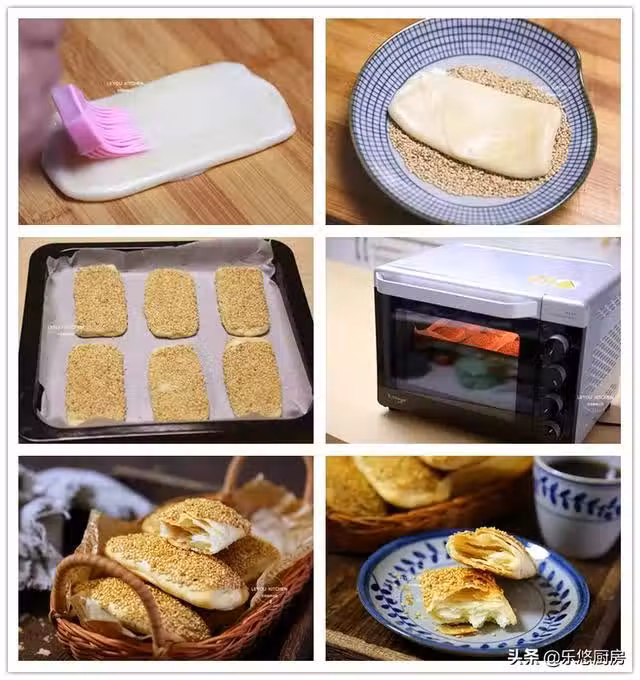 3、 這款燒餅,重複了三次擀開再捲起來,我把每一步都寫下來,雖然看起來有點繁瑣,但這樣可以讓大家更好的了解整個過程。希望大家不要覺得麻煩,其實只要做一次,就會感覺很簡單。
