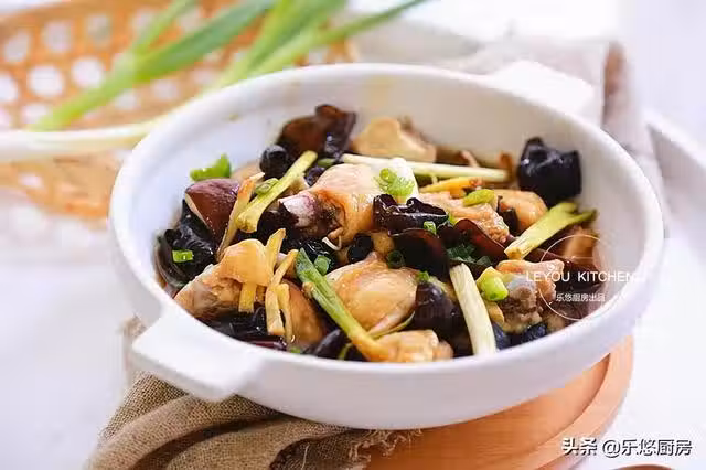 第一步:準備食材。雞腿2個、香菇幾個、木耳幾個、姜適量、香蔥適量。