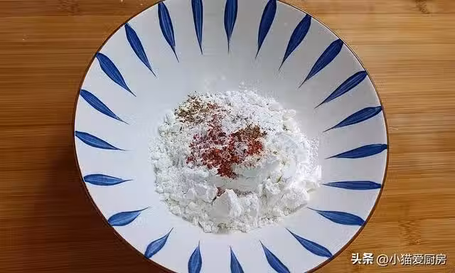 【步驟八】:把澱粉糊倒入腌制好的肉條裡邊,攪拌均勻讓肉條裹上澱粉糊,靜置一會。