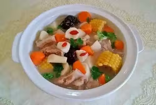 材料:豬排骨(腔骨、棒骨都行)300克、玉米2根、胡蘿蔔2根、山藥1根、紅薯1個、姜20克、鹽適量