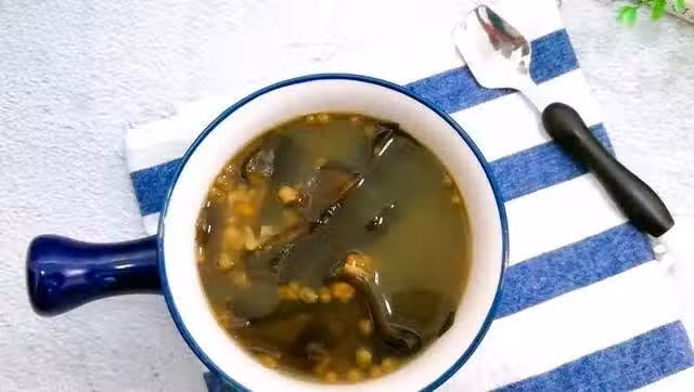 【食材】綠豆100克,海帶150克,紅片糖50克