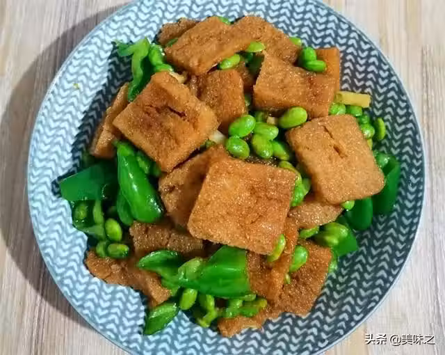 魔芋3塊、毛豆500克、青椒1個、料酒1勺、生抽1勺、姜少許、蒜少許、食用油適量、鹽1勺。