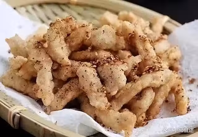 5.肉條倒入拌菜盆中,撒入椒鹽,上下顛翻,肉條均勻沾上椒鹽,裝盤即可。