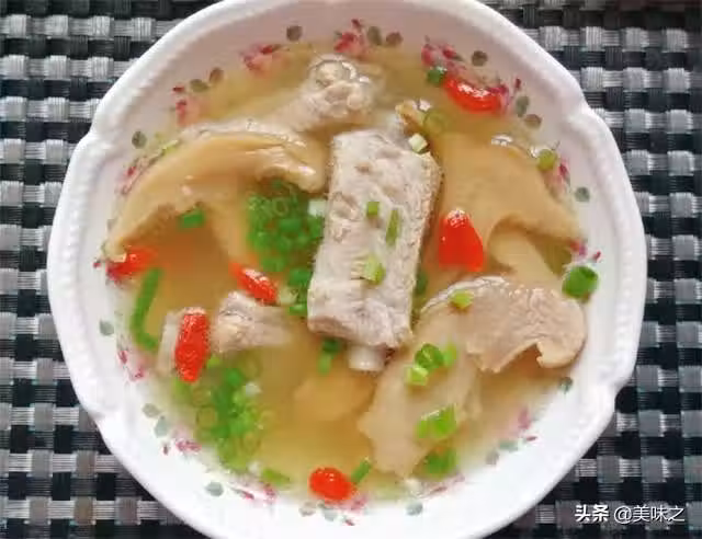 松茸干適量、排骨二斤、鹽適量、香蔥適量、枸杞適量。