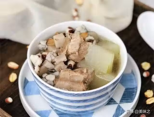 排骨600克、冬瓜400克、芡實50克、茯苓30克、蓮子20克、薑片適量、鹽適量、胡椒粉少許、黃酒適量。