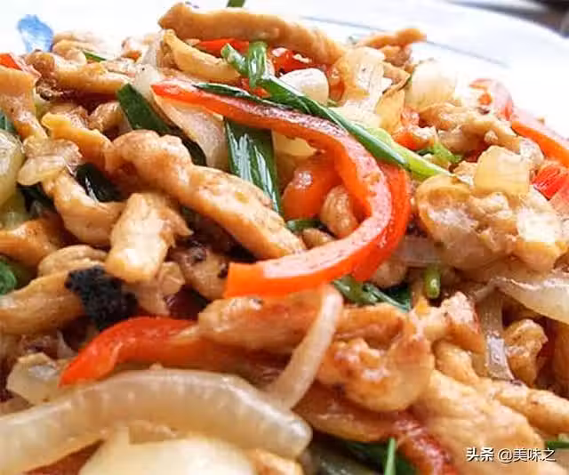 雞胸肉適量、洋蔥適量、紅椒適量、蔥適量、油適量、生抽適量、蒜適量、澱粉適量、白酒適量、鹽適量。