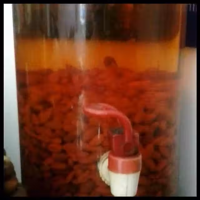 先把酒、枸杞、人蔘放入一個酒桶.
