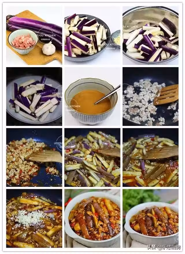 第八步:將茄條放入鍋中翻炒均勻。