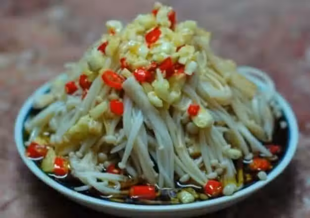 食材:金針菇、香菜、小蔥、蒜、白糖、白醋、香油。蒸魚鼓油、油、辣椒