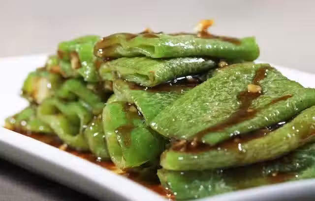 用料:青椒、油、生抽、鹽、糖、醋、蒜