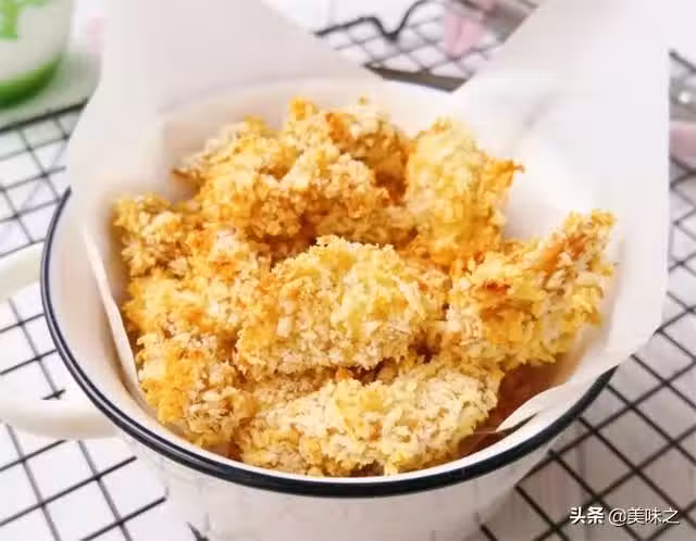 5、再放到麵包糠里裹一下,這樣一個雞米花就弄好了。