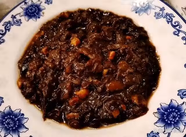 2.起鍋燒油,下入蔥姜蒜爆香,加入一勺東北大醬,小火炒香,加入適量清水燒開,下入炸過的茄子,調入少許鹽、醬油、蚝油、十三香、少許胡椒粉,燒至完全入味,用鏟子搗碎,收濃湯汁,淋幾滴香油進去,即可出鍋裝盤。