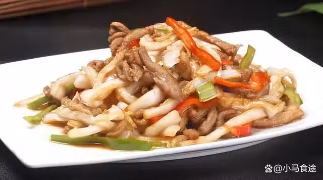 1.白菜選白菜幫,改刀切成均勻的粗絲。豬瘦肉改刀均勻的絲備用。再切點青紅椒絲備用。