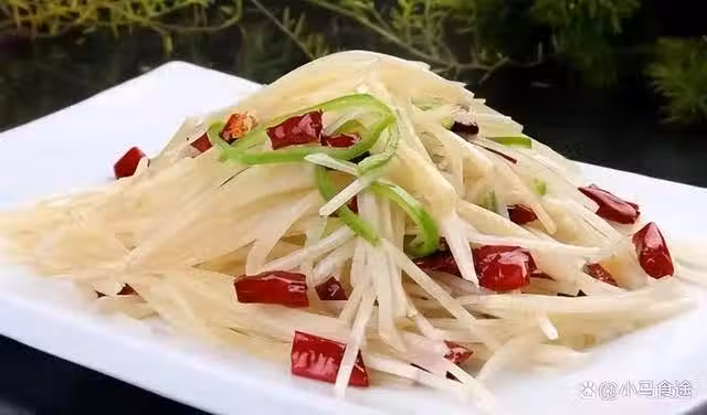 酸辣土豆絲,這道菜在醋溜土豆絲的做法上,加了干辣椒的香辣味,形成新的味型,酸辣味,酸辣土豆絲酸辣爽口,下飯下酒,備受大眾青睞。