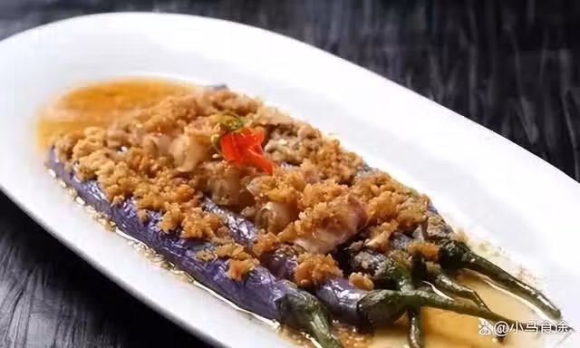 蒜蓉蒸茄子,茄子配上金銀蒜,用清蒸的方式整出來,出鍋澆上豉油汁,蒜香濃郁,好吃下飯。