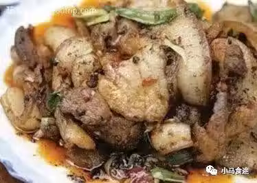 1. 豬肉煮熟切片,蒜苗切"馬耳朵"形,白麵餅改刀切塊,入油鍋炸制金黃撈出備用。