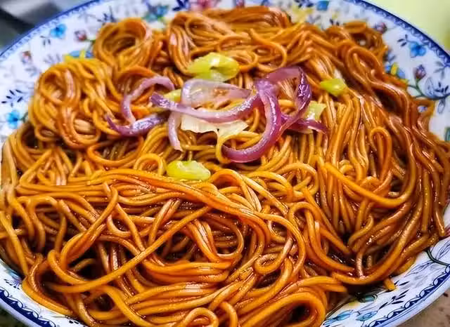 家庭版蔥油拌面,起鍋燒化豬油,加入蔥段和薑片、洋蔥、八角炸香,撈出料渣,加入醬油和一品鮮、香醋熬香,少許白糖和味精,攪勻澆淋在煮熟的麵條中,攪和均勻即可開吃。