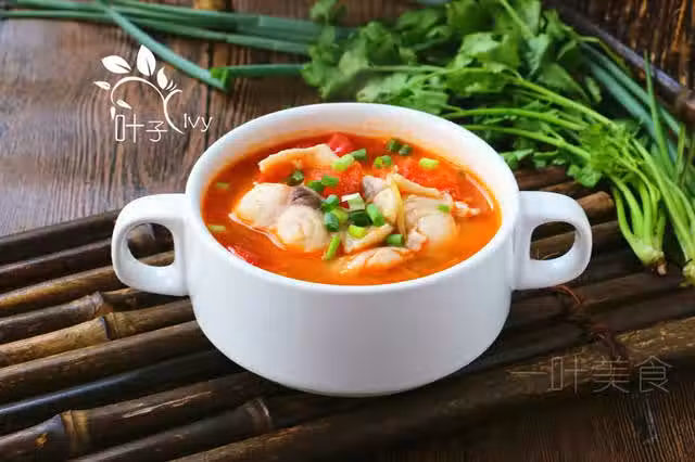 1.番茄切小塊,草魚去黑膜,洗乾淨,切成硬幣厚度的薄片。加入鹽,胡椒粉,生粉抓勻。淋入少許色拉油,再拌勻。
