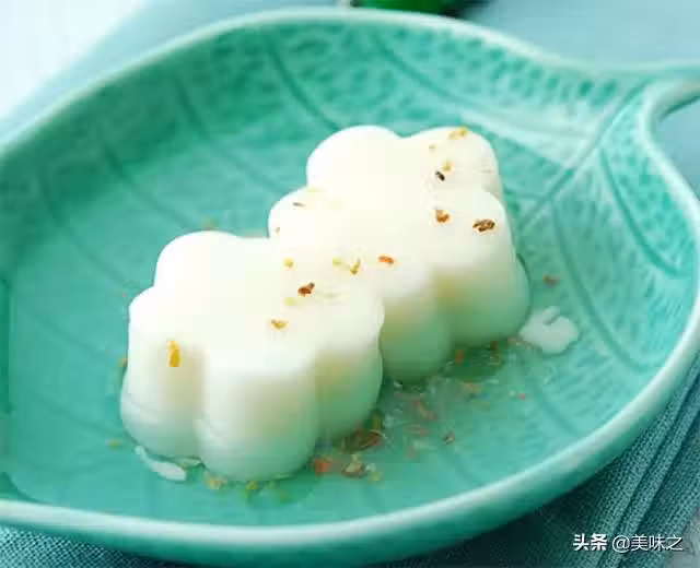 11、容器中加入少許糖桂花嗎,用白開水化開,放入切好的杏仁豆腐即可食用。也可以直接把糖桂花淋在杏仁豆腐上食用。