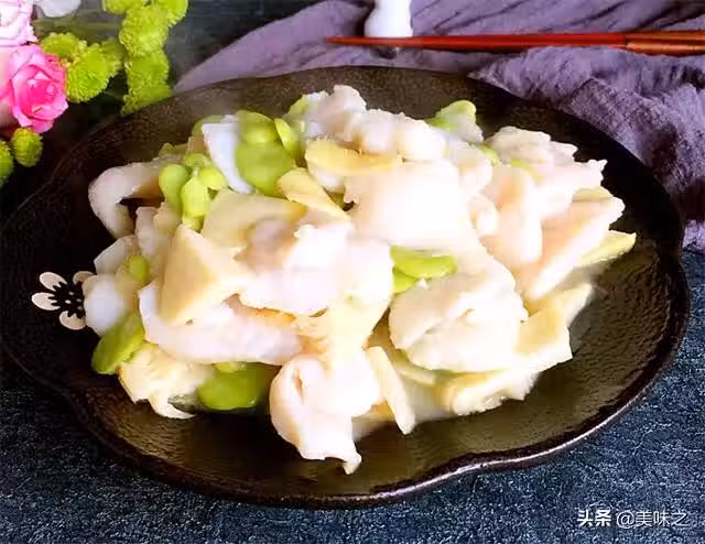 1、筍焯水撈出切片,豆瓣焯水撈出備用。