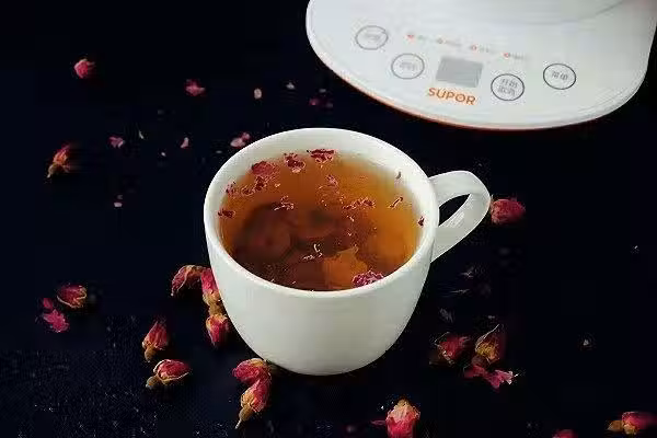 食材:玫瑰花茶10克, 紅棗片30克,枸杞15克, 黃芪片3片,冰糖60克 ,純凈水適量